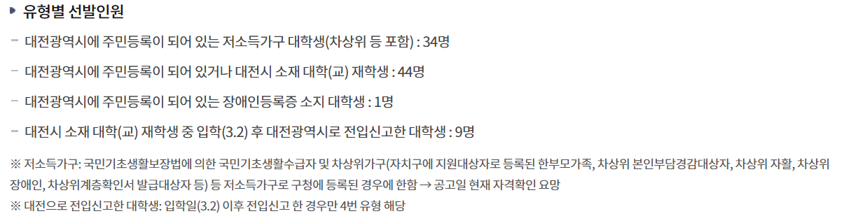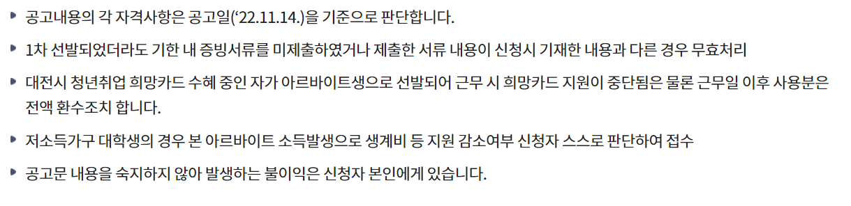 2022년 11월 14일 기점으로 대전에 주민등록이 되어있거나 대전에 있는 대학(교)에 재학하고 있는 학생