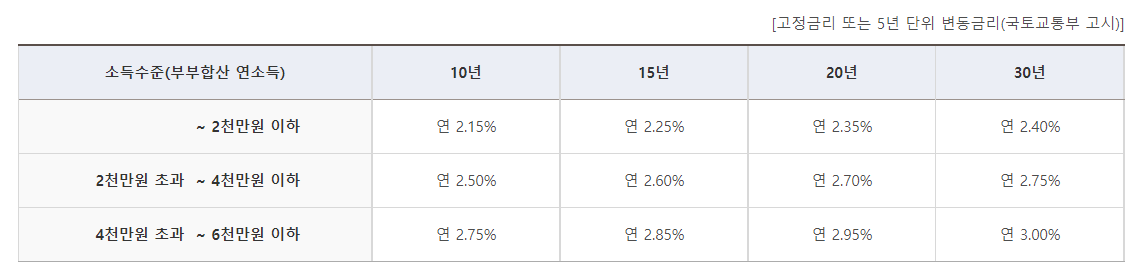 부부합산 연소득 6천만원 이하(생애최초 주택구입자, 2자녀이상 가구 또는 신혼가구는 연소득 7천만원 이하), 순자산가액 4.58억원 이하 무주택 세대